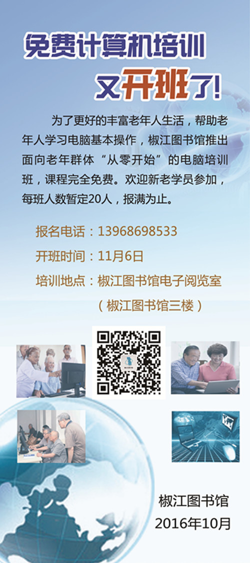 下一篇 :椒江区图书馆开展老年人计算机培训活动 [2016-11-10]