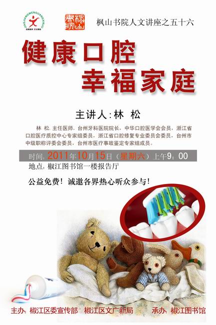 枫山书院讲座(第56讲):健康口腔,幸福家庭----呵护孩子,预防龋齿