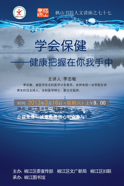 枫山书院讲座(第77讲):学会保健――健康把握在你我手中