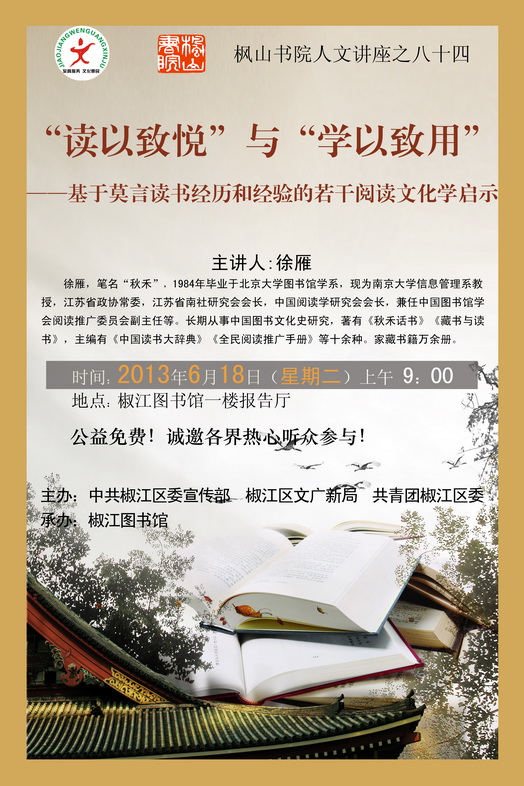 枫山书院讲座(第84讲):“读以致悦”与“学以致用”