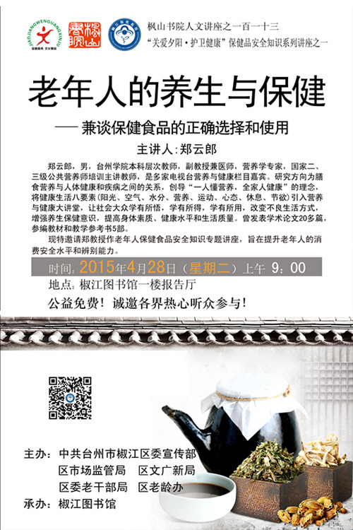 枫山书院讲座(第113讲):老年人的养生与保健——兼谈保健食品的正确选择和使用