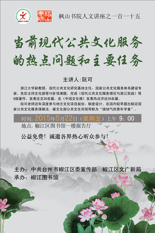 枫山书院讲座(第115讲):当前现代公共文化服务的热点问题和主要任务