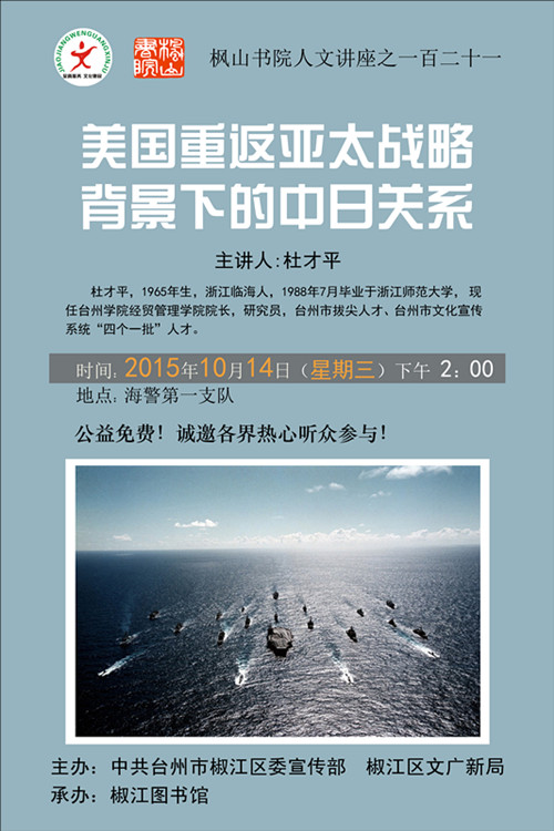 枫山书院讲座(第121讲):美国重返亚太战略背景下的中日关系