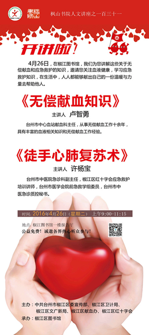 枫山书院讲座(第131讲):无偿献血知识和徒手心肺复苏术