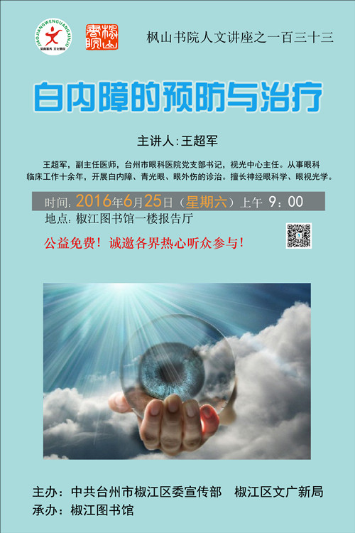 枫山书院讲座(第133讲):白内障的预防与治疗