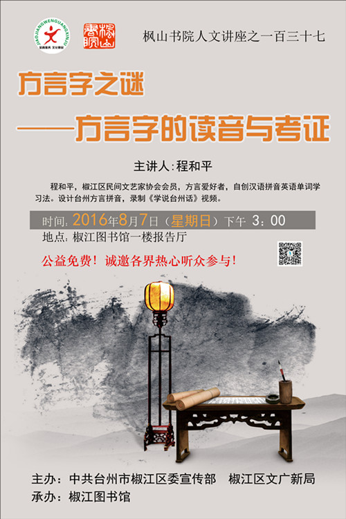 枫山书院讲座(第137讲): 方言字之谜——方言字的读音与考证