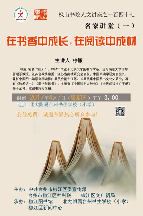 枫山书院人文讲座(第147讲): 在书香中成长,在阅读中成材