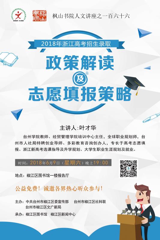 枫山书院人文讲座(第166讲):2018年浙江高考招生录取政策解读及志愿填报策略