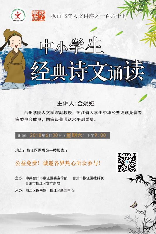 枫山书院人文讲座(第167讲):中小学生经典诗文诵读