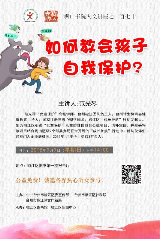 枫山书院人文讲座(第171讲):如何教会孩子自我保护