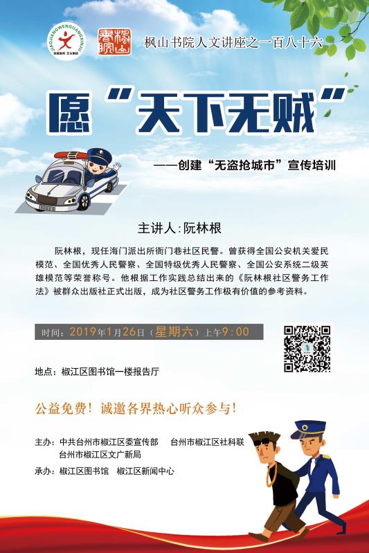 枫山书院人文讲座(第186讲):愿“天下无贼”——创建“无盗抢城市”宣传培训