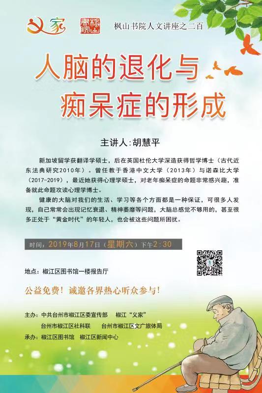 枫山书院人文讲座(第200讲):人脑的退化与痴呆症的形成