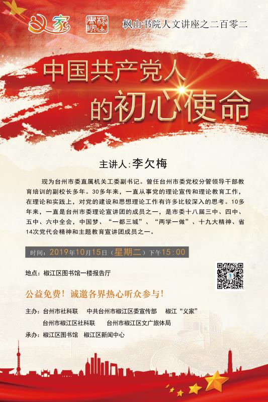 发布时间:2019-10-11 17:21 来源:椒江图书馆 阅读次数:2159